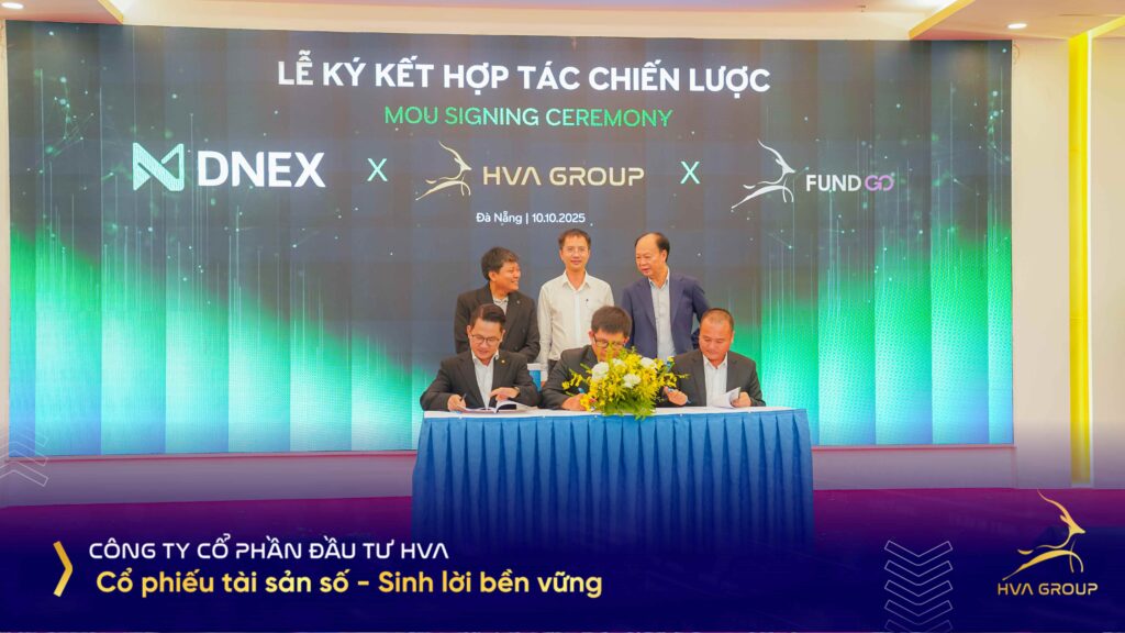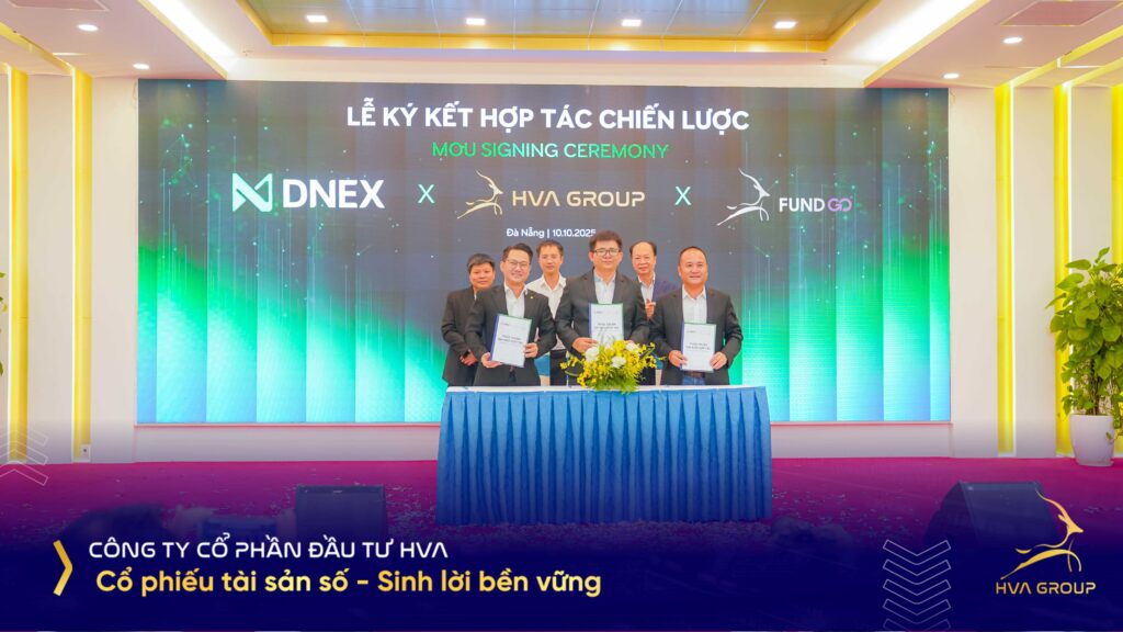 Ngày 10/10/2025, trong khuôn khổ Lễ ra mắt Nền tảng Giao dịch Tài sản số DNEX tại thành phố Đà Nẵng, Công ty Cổ phần Đầu tư HVA (HVA Group), Công ty Cổ phần Sàn giao dịch Tài sản số DNEX và Quỹ Đầu tư Khởi nghiệp Sáng tạo FUNDGO Đà Nẵng đã chính thức ký kết thỏa thuận hợp tác chiến lược. Sự kiện không chỉ đánh dấu bước phát triển mới của DNEX, mà còn thể hiện cam kết dài hạn của ba bên trong việc kết nối công nghệ – tài chính – đầu tư để xây dựng một hệ sinh thái tài chính số toàn diện, minh bạch và bền vững tại Việt Nam.